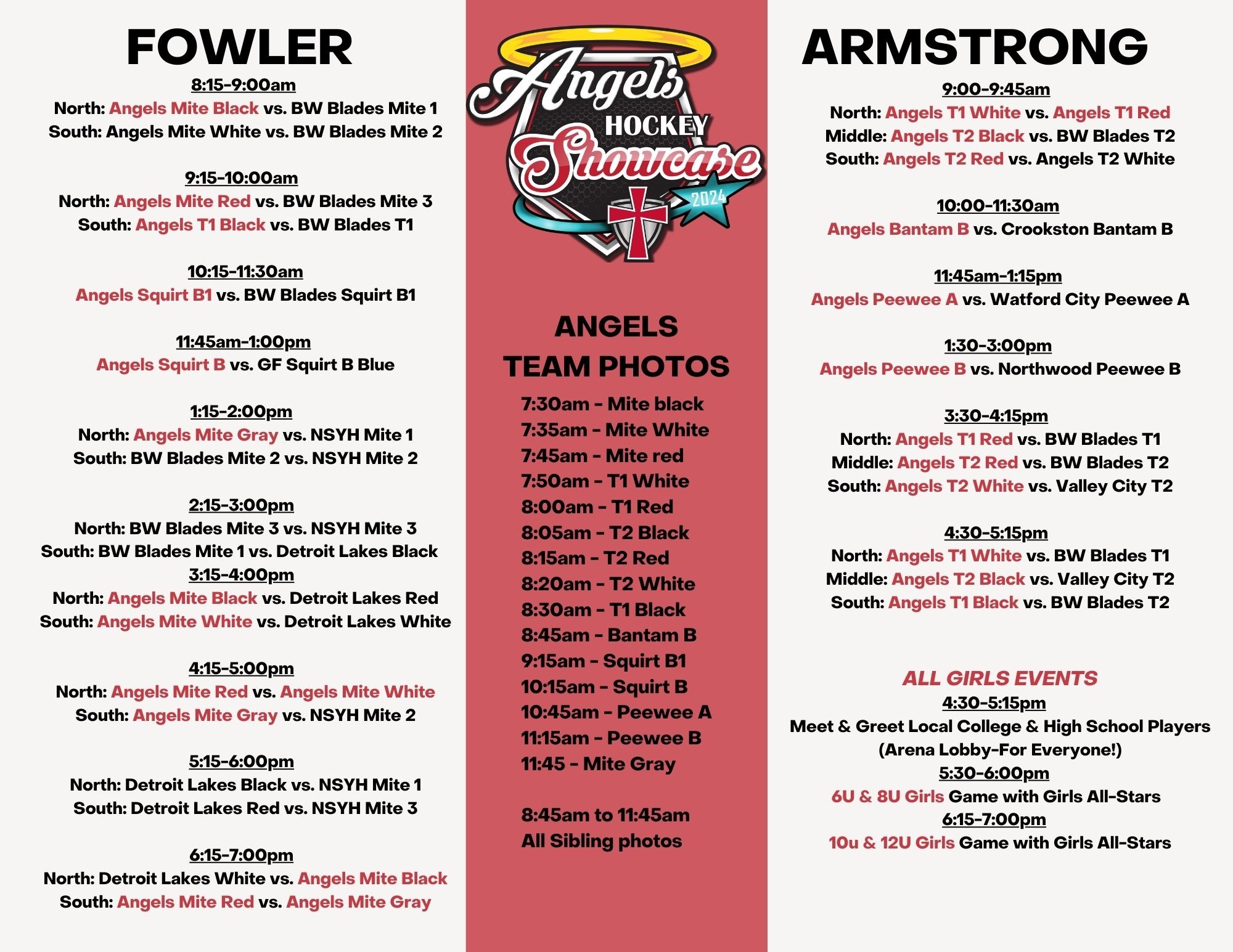 2024 Angels Showcase Schedule