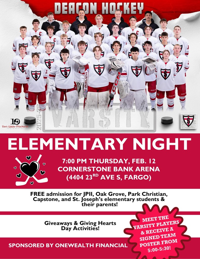 Shanley Boys Hockey "Elementary Night" Feb. 12th