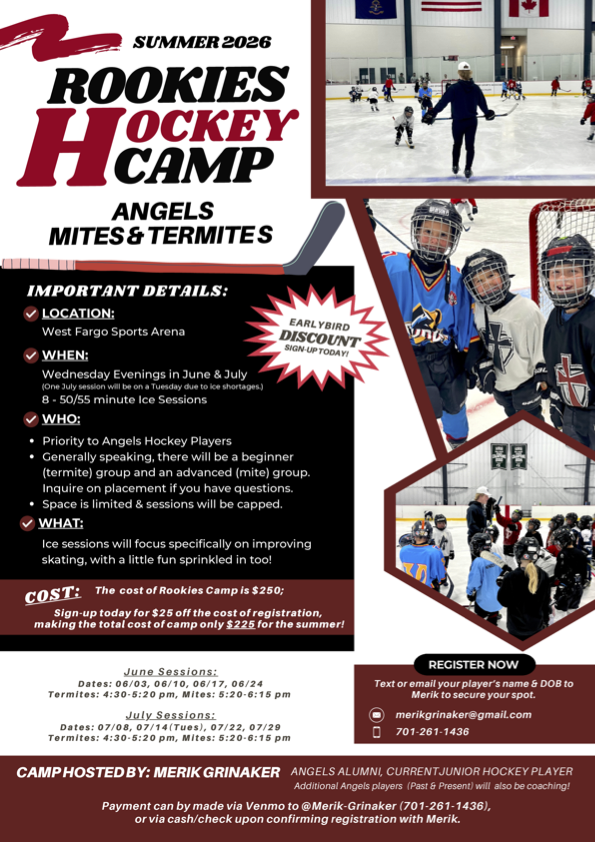 This camp is for Angel players that will be Mite & Termite eligible for the 2026-27 season who participated with the Angels in 2025-26.